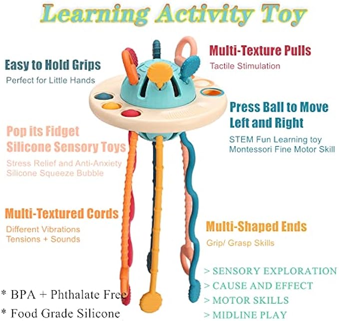 ?【Learning Activities STEM Toys】NEW UPGRADED DESIGN.Fun to stretch, squeeze and bending.Pull cords,hear and feel sounds and vibrations.Develop cognitive abilities and hand-eye coordination skills !