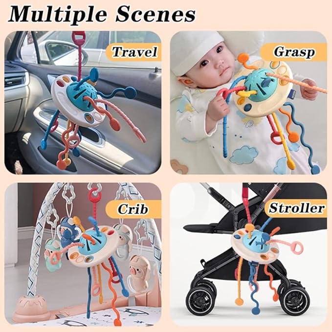 ?【Multiple Occasions Pulling Toy】Easy to carry.Clip to stroller,car seat or high chair.Playing and stress relief toy for baby.Textured stretchy sensory string toys are ideal gifts for relief impulses in the autistic children !