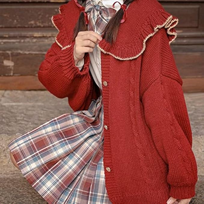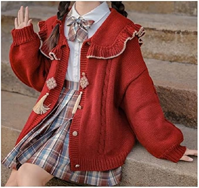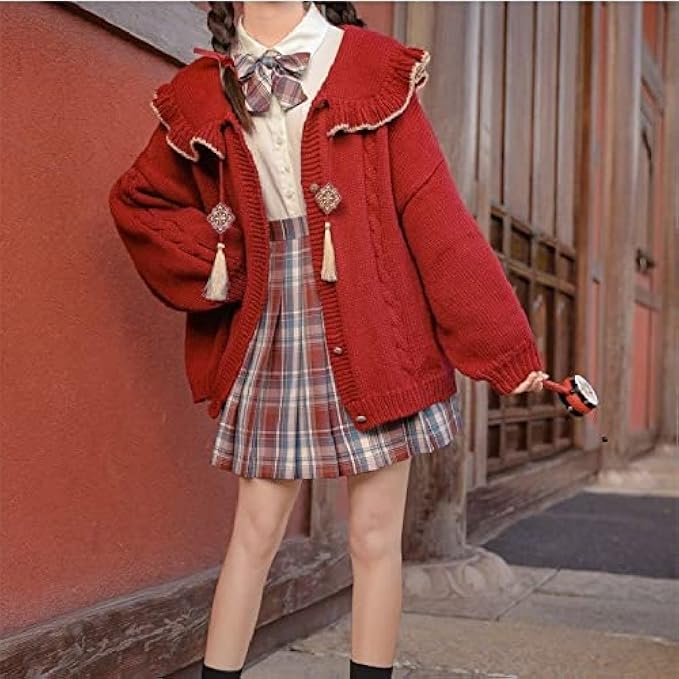<li class="a-spacing-mini"><span class="a-list-item"> Big red self-container property, and has a festive blow. </span></li> <li class="a-spacing-mini"><span class="a-list-item"> The door, cuffs, and clothing are made of threaded design, which is not easy to deform. </span></li> <li class="a-spacing-mini"><span class="a-list-item"> Body, plugging, plus six knitted road, highlighting the design level. </span></li> <li class="a-spacing-mini"><span class="a-list-item"> The design of the collar and the design of the wooden ears, increasing the level and aggravation factor, can cover the shoulders and humpback, playful. </span></li> <li class="a-spacing-mini"><span class="a-list-item"> The loose version and the design of the point of the lantern sleeves will seem to be a little, the knitted road of the coarse yarn is also simple. </span></li>