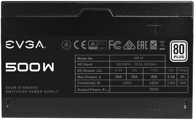 EVGA 500 W1, 80+ WHITE 500W Power Supply( 100-W1-0500-KR)