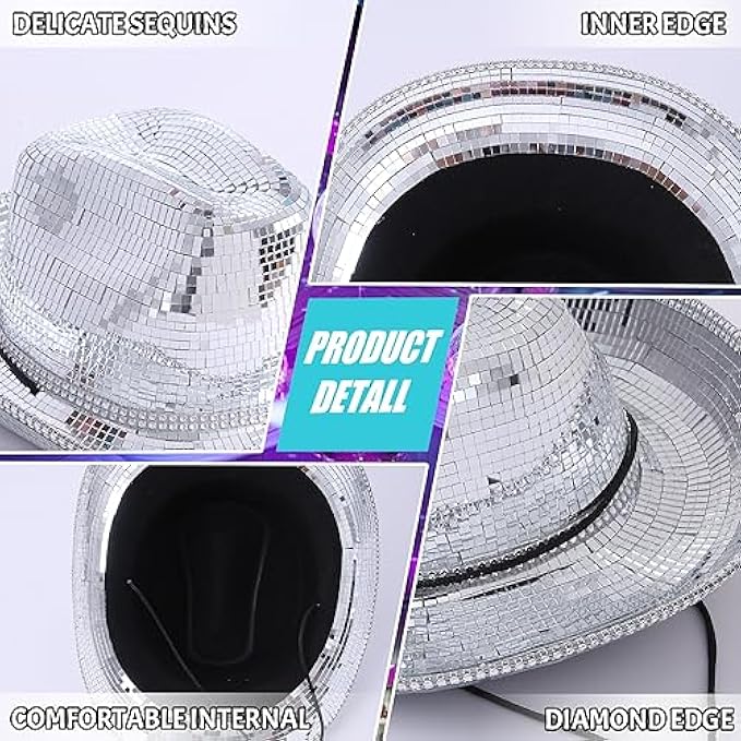 • Experience Excellent Quality: This mirror ball cowboy hat is expertly crafted from the finest glass silver mirror and features a luxuriously smooth polyester lining.