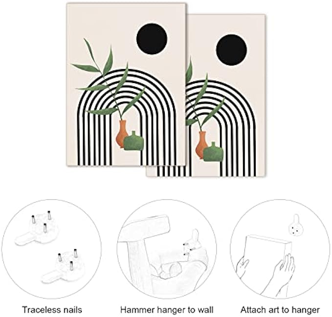 • 【Durable & Waterproof Canvas Wall Art】This set of abstract canvas wall art prints is designed with bohemian style, sun, moon, geometric lines and botanical elements. Minimal lines with mid-century sun and moon Bismarck mountains make the artwork more abstract and highlight your unique artistic temperament no matter where it is decorated