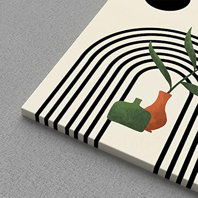 • 【Minimalist wall decor Wall Decor Canvas Wall Art】This minimalist neutral geometric black green botanical canvas wall decor, modern wall decor prints, printed on 14pt semi-gloss canvas (waterproof), printed with UV resistant ink (fade resistant) gallery quality giclée printing for a vibrant piece, wrapped in a wood frame that will last, tightly stretched to ensure the canvas won't crease and bend
