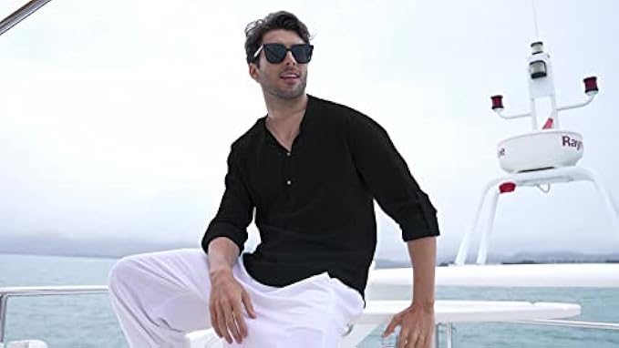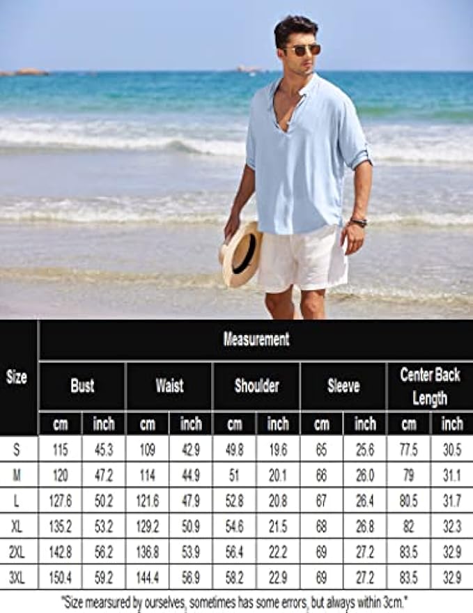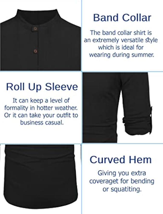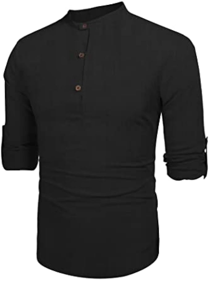 <li class="a-spacing-mini"><span class="a-list-item"> 65%cotton30%viscose5%linen </span></li> <li class="a-spacing-mini"><span class="a-list-item"> Imported </span></li> <li class="a-spacing-mini"><span class="a-list-item"> Button closure </span></li> <li class="a-spacing-mini"><span class="a-list-item"> Machine Wash </span></li> <li class="a-spacing-mini"><span class="a-list-item"> 【Premium Fabric】Lightweight cotton linen material bring the ultimate in all seasons comfort to a smartly tailored henley shirt. </span></li> <li class="a-spacing-mini"><span class="a-list-item"> 【FEATURE】Casual mens linen shirt, has a stand collar, solid color, slim fit, long sleeve(Roll-up), button placket. </span></li> <li class="a-spacing-mini"><span class="a-list-item"> 【COLLECTION】Update your off-day wardrobe with this long sleeve henley shirt. The classic linen shirts easy to pair with chinos/jeans for everyday casual wear. Or match with dress pants as a formal look. </span></li><li class="a-spacing-mini"><span class="a-list-item">【OCCASION】: This fashion henley shirt is a perfect pick for your next vacation. Also great for beach, yoga, wedding, party and business, work. Perfect gift for families, friends and boyfriend.</span></li> <li class="a-spacing-mini"><span class="a-list-item">【NOTE】US size. Machine wash.</span></li>