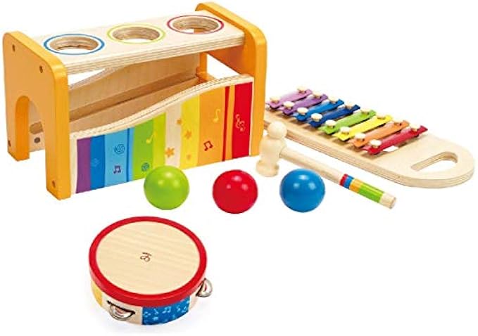 • GREAT MUSICAL GIFT: The Pound, Tap, & Shake! Music Set is a perfect gift idea for children as an early introduction to music and melodies. A great development tool for kids who took an early start!