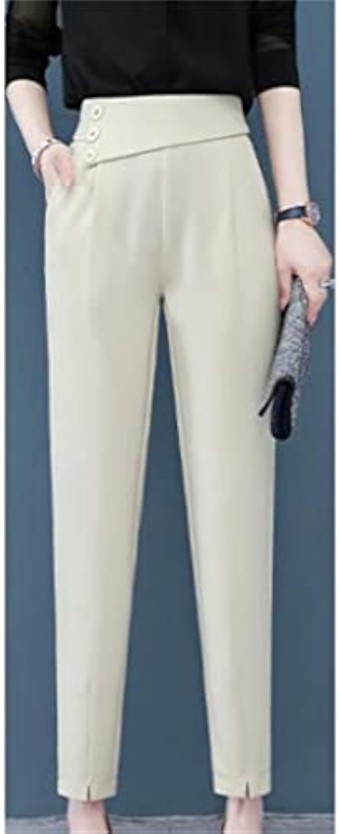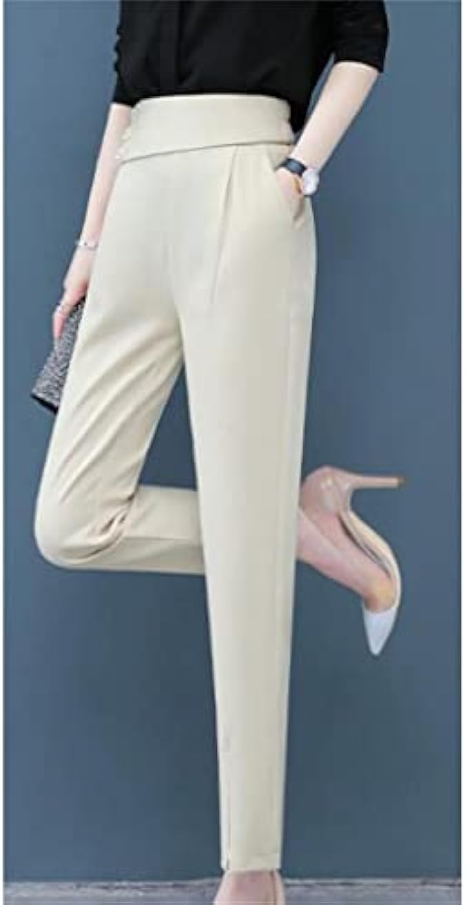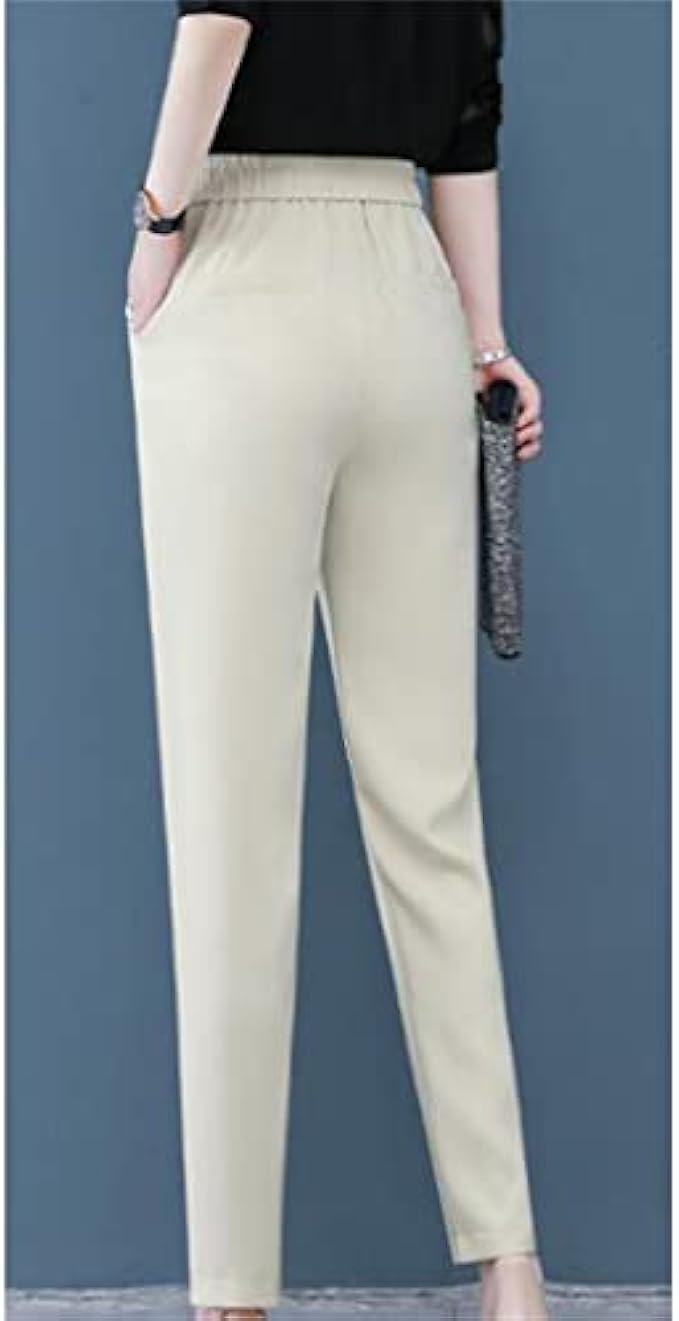 JKUYWX Elegant Suit Pants Women High Waist Ice Silk Pants Fashion Lady Pencil Pants Casual (Color : D, Size : S Code)