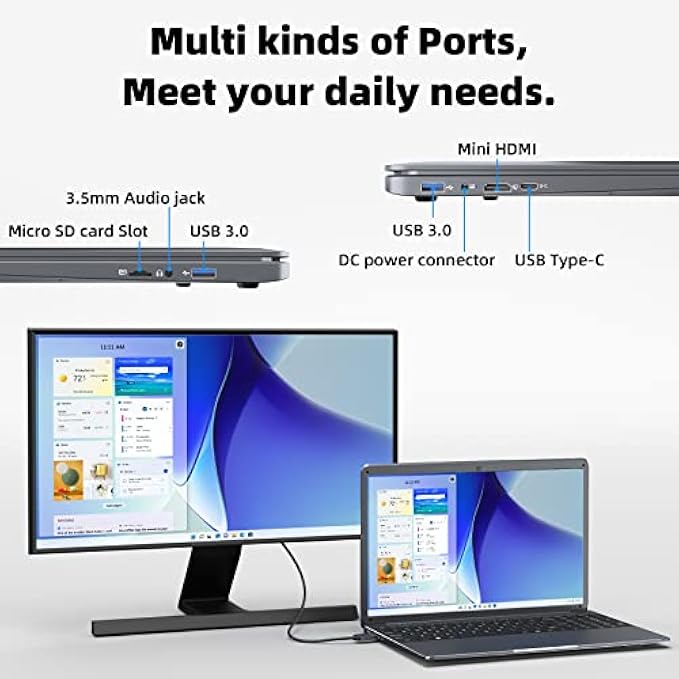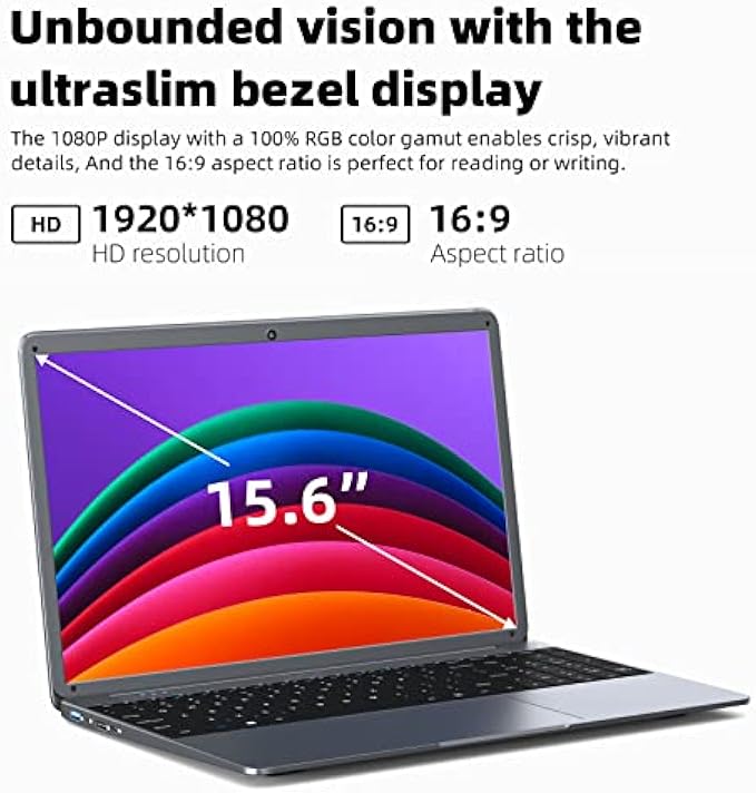 Efficient Performance: The 15.6 inch laptop is pre-installed with Windows 11 and equipped with a powerful Intel Celeron N5095 Quad-Core processor with a turbo frequency of up to 2.9 GHz. The performance of the laptop prevents you from lagging in the process of use. The newest laptop come with cleaning flow fans and anti-dust technology extend system, which is designed for airfolw. It can immerse yourself in another world. Storage and Memory: The laptop has built-in 12GB RAM and 512GB storage space, runs smoothly, responds quickly, handles multi-application and multimedia workflows efficiently and quickly, supports 512GB TF card expansion. With extensive interfaces such as Mini HDMI, 2xUSB 3.0, USB Type-C, Micro SD card slot, etc. to meet your needs. Beautiful Large Display: The Windows 11 laptop adopts a 15.6-inch 1920×1080 Full HD IPS screen, the text is sharp and clear, and the colors are more vivid. Wide range of applications, suitable for study, work, entertainment, Internet surfing. Long Battery Life: The Full HD Laptop is matched with a thin shell, 2cm slim body, 1.69KG lightweight, and easy to carry. Equipped with an advanced 38000 mWh rechargeable battery, providing up to 8 hours of battery life, convenient for traveling. Worry-free after-sales: SGIN provide 365 days warranty service, if you have any questions, please contact us, we will reply you within 12 hours to help you solve the problem.