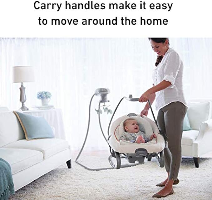 Removable swing seat doubles as a portable rocker, with carry handles to make it easy to move around the home