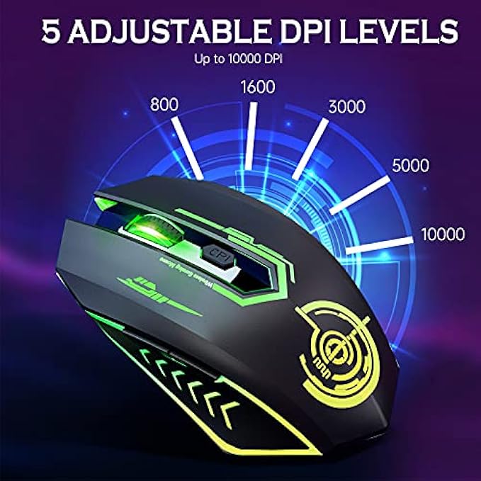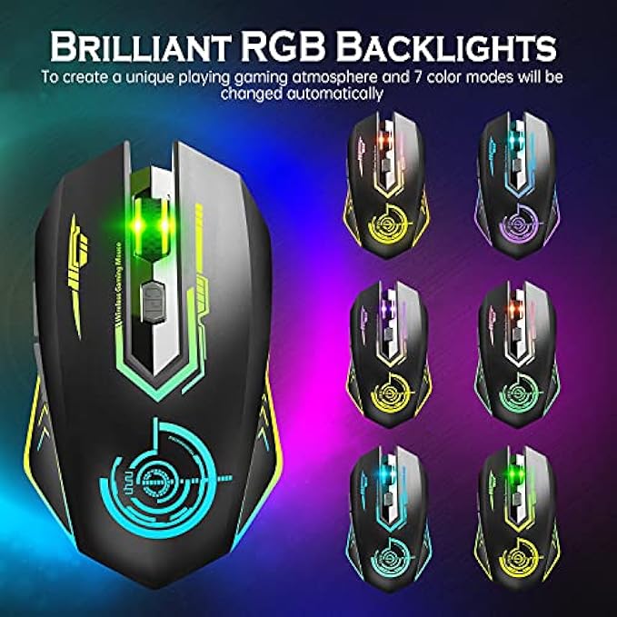 UHURU Wireless Gaming Mouse Up to 10000 DPI, Rechargeable USB Wireless Mouse with 6 Buttons 7 Changeable LED Color Ergonomic Programmable MMO RPG for PC Laptop, Compatible with Windows Mac