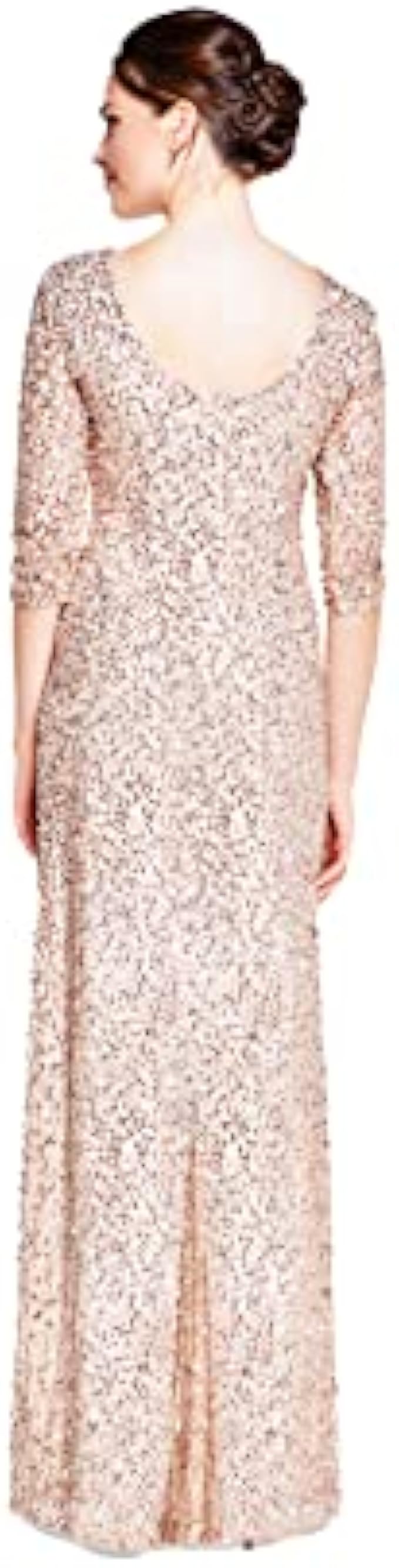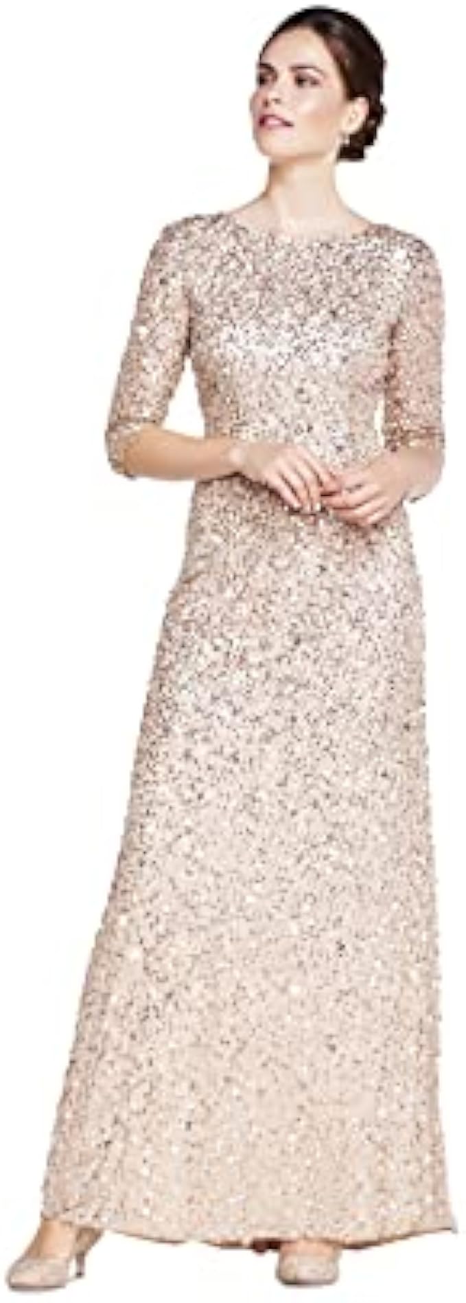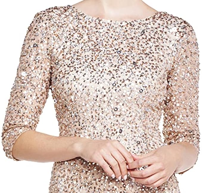 <li class="a-spacing-mini"><span class="a-list-item"> 100% Polyester </span></li> <li class="a-spacing-mini"><span class="a-list-item"> Imported </span></li> <li class="a-spacing-mini"><span class="a-list-item"> Zipper closure </span></li> <li class="a-spacing-mini"><span class="a-list-item"> Hand Wash Only </span></li> <li class="a-spacing-mini"><span class="a-list-item"> Rows upon rows of glittering sequins adorn this beautiful three-quarter sleeve dress </span></li> <li class="a-spacing-mini"><span class="a-list-item"> Elegant silhouette made from the finest and most luxurious fabrics </span></li> <li class="a-spacing-mini"><span class="a-list-item"> All bead work, embroidery, and ornamentation has been done completely by hand </span></li>