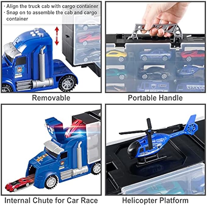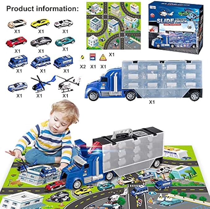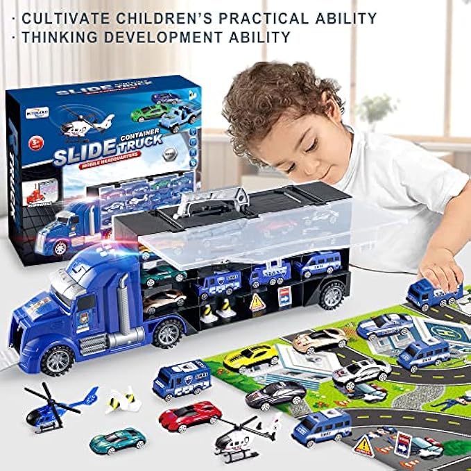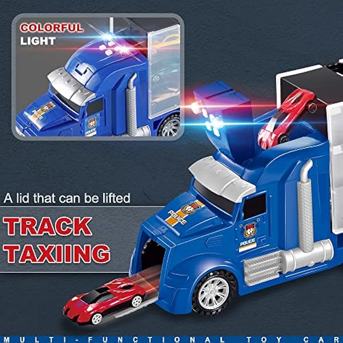 18Pcs Transport Car Carrier Truck Toy for Boys and Girls ,Double Side Transport Car Toys with Sound and Light,Toy Trucks for 3 4 5 6 Year Old Boys Girls Birthday Party Favor