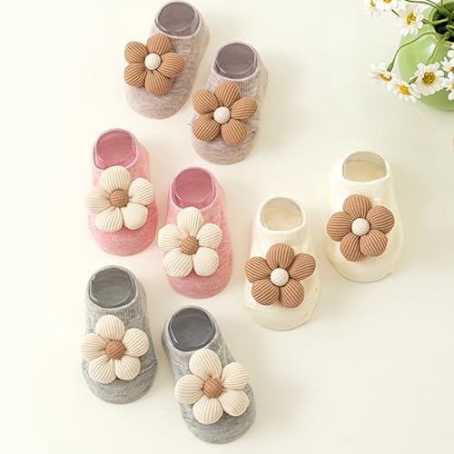 4Packs Baby Girls Socks,Flower Non-Slip Grips for Babies Toddler Princess Low Cut Ankle Socks for Girls
