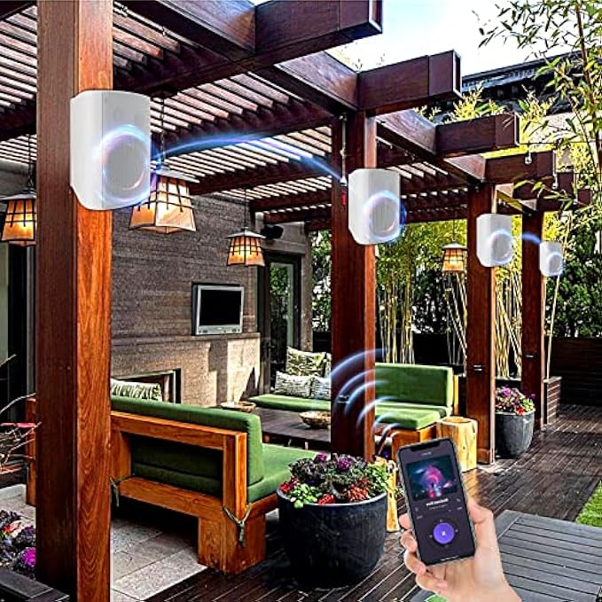 【6.5" Subwoofer & 2.3" Tweeter】Our outdoor bluetooth speakers are uniquely engineered with a 2.3-inch premium dome tweeter and 6.5-inch aluminum injection cone woofer. Install this pair of outdoor speakers where you want them and start enjoying surround stereo sound reproduction and impressive bass response