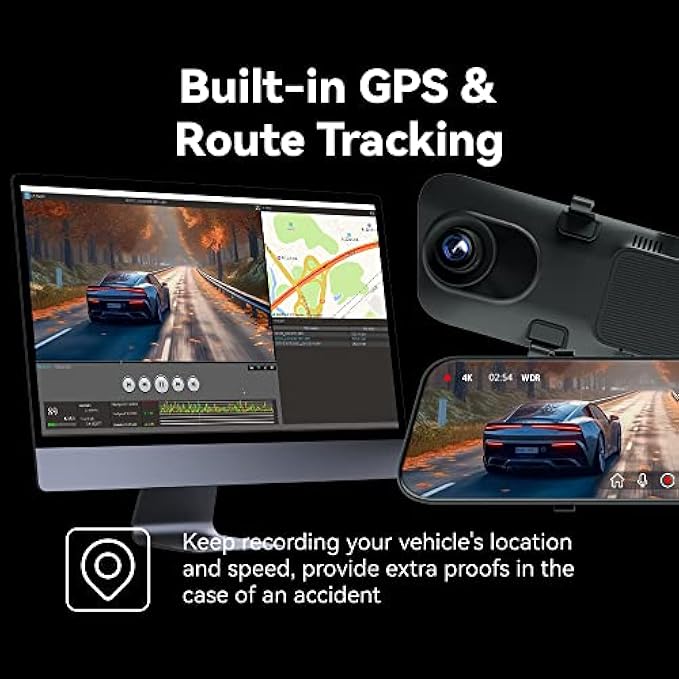 • Free 32G TF CARD & GPS Tracking - Built-in GPS accurately records your driving location and route information, providing more detailed and reliable evidence in case of accidents. View your driving route and tracker on the dedicated GPS player