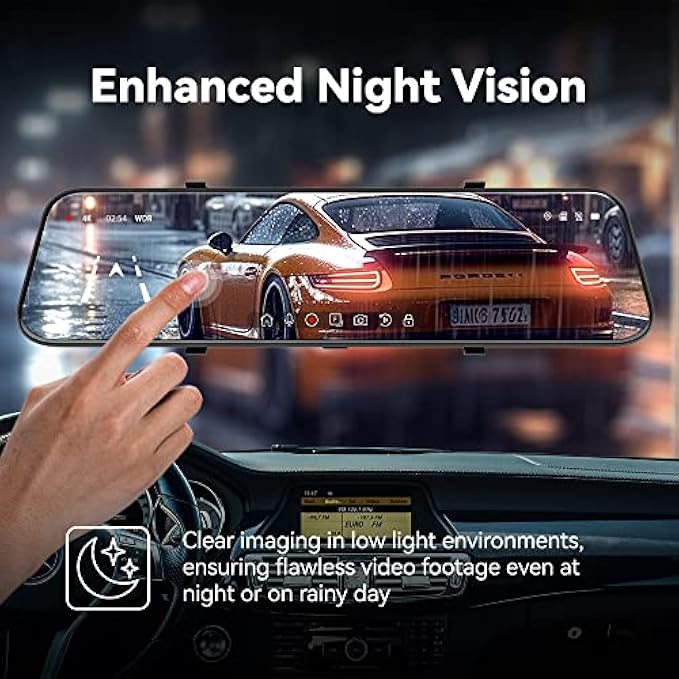 • Excellent 4K Ultra HD Dual Camera - Equipped with 4K UHD front camera plus HDR technology, the car camera can achieve dual-vision recording and help capture key details like road signs, license plates, etc. With advanced image processing technology, the mirror dashcam effectively minimizes glare distortion from vehicles behind you or the daylight cast