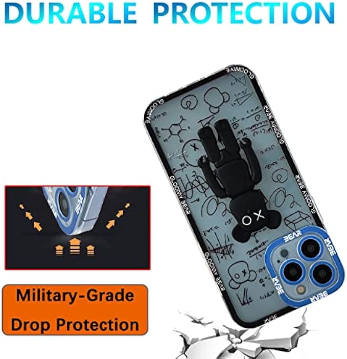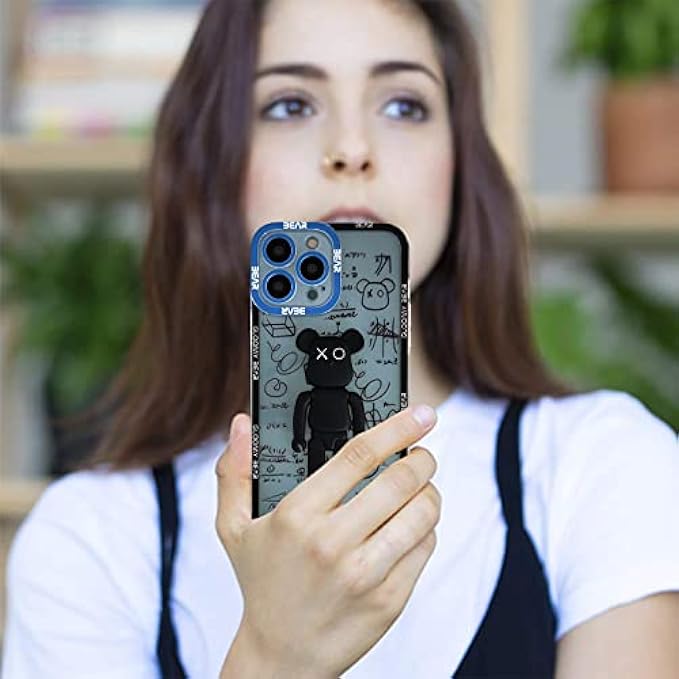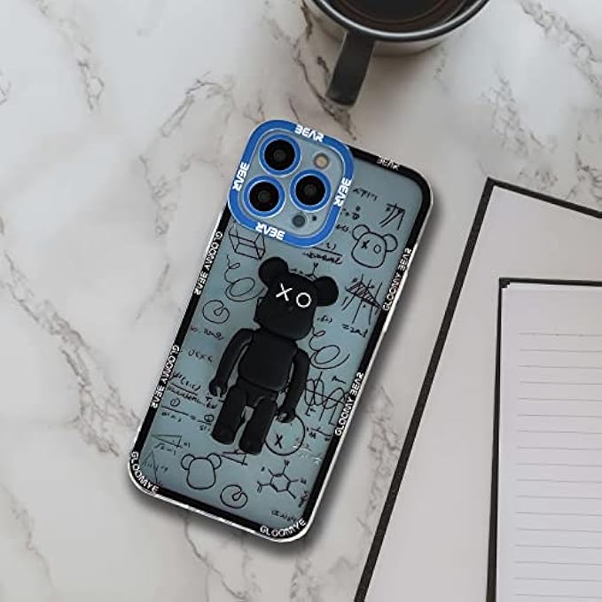 Cool iPhone 14 Pro Case 3D Bear with Kickstand Designer for Boys Kids Men, Street Fashion Soft Slim TPU Camera Lens Protection Clear Cover for iPhone 14 Pro - Black Bear