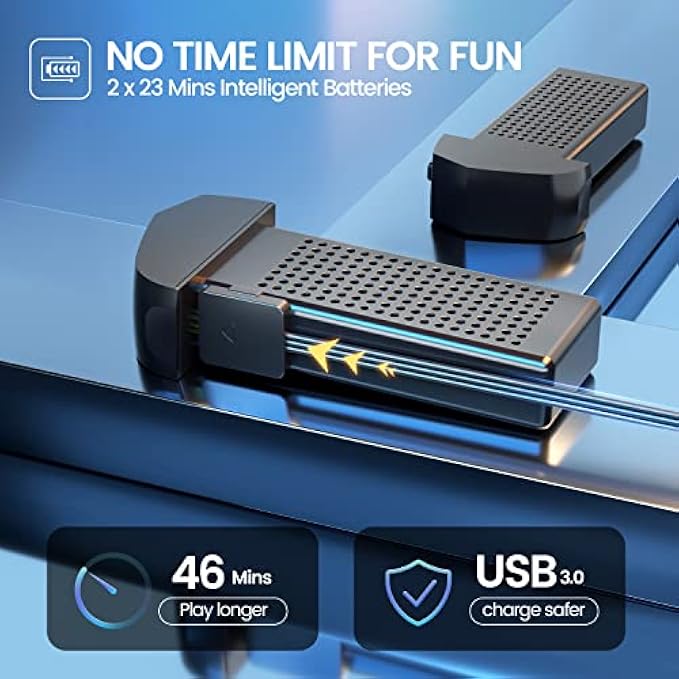 Better Flight Experience: 2 batteries give you up to 46 minutes flight experience. And functions like Altitude Hold, Optical Flow, Headless Mode, One Key Take Off/Landing and Speed Adjust make it so easy to beginners or newbies.