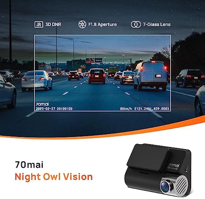 • 【Powerful Night Vision】4K dash cam A800S delivers excellent low-light performance that exceeds the traditional 3.3x. With 3D DNR (Dynamic Noise Reduction) technology and full 7-Glass/F1.8 aperture lens, the camera minimizes image noise. A dash cam that can be used with confidence at any time of the day or in certain weather conditions