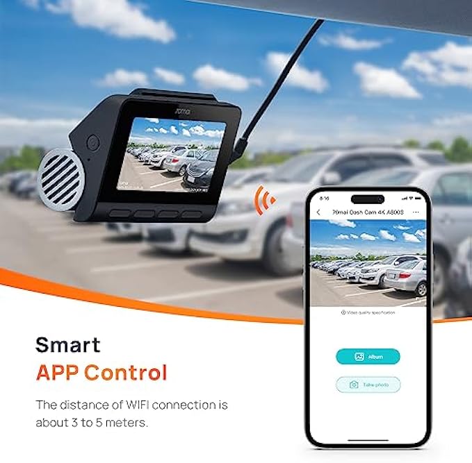 • 【In-app Control & Footage Sharing】Sharing is not a problem anymore with the dash cam 4K A800S, the 70mai App supports both iOS & Android systems, allowing you to view and download videos via Wi-Fi hotspot connection. In case of an accident, you can simply share the footage with your insurance provider for a more efficient claims process. Also, this function enables you to achieve continuous OTA updates by automatically fixing bugs and updating software