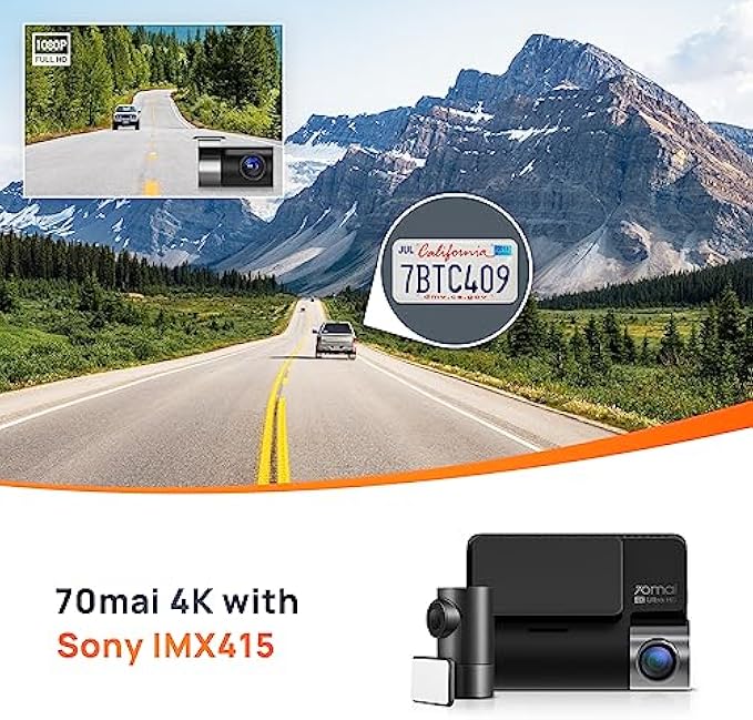70mai True 4K Dash Cam A800S with Sony IMX415, Front and Rear, Built in GPS, Super Night Vision, 3'' IPS LCD, Parking Mode, ADAS, Loop Recording, iOS/Android App Control