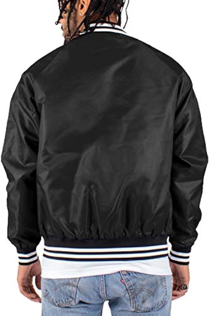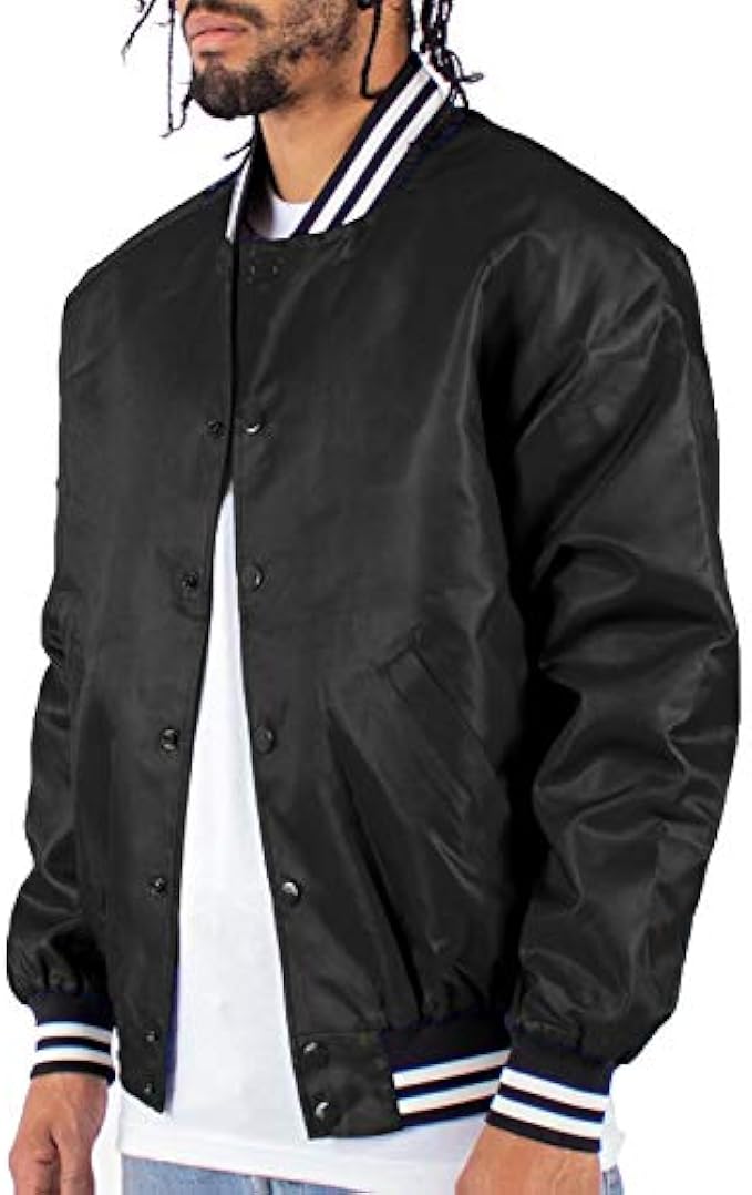 <li class="a-spacing-mini"><span class="a-list-item"> Shell - 100% Nylon, Lining - 100 Polyester, Filling - 100% Polyester </span></li> <li class="a-spacing-mini"><span class="a-list-item"> Imported </span></li> <li class="a-spacing-mini"><span class="a-list-item"> Polyester lining </span></li> <li class="a-spacing-mini"><span class="a-list-item"> Snap closure </span></li> <li class="a-spacing-mini"><span class="a-list-item"> Hand Wash Only </span></li> <li class="a-spacing-mini"><span class="a-list-item"> LONG-LASTING & DURABLE – This high-quality water resistant padded bomber jacket for men has been constructed to last a long time. It will last through multiple wash-cycles with longer lasting color. This premium quality bomber jacket will keep its shape over time without any stretching, sagging, or wearing out. Lined with super soft polyester for warmth, the nylon exterior is perfect for protecting against various weather conditions and is especially ideal for cooler seasons. </span></li> <li class="a-spacing-mini"><span class="a-list-item"> VERSATILE BASIC – A classic jacket that never goes out of style, this bomber jacket is the perfect basic essential that every guy needs in his closet. It’s an outerwear jacket that goes with any outfit, making it easy to throw on and go. Style this with your coolest sneakers or boots with your favorite tees and jeans for everyday casual attire. It’s made to be comfortable for all day wear, making this sleek, sporty bomber great for any event or occasion. Choose from a variety of cool colors. </span></li><li class="a-spacing-mini"><span class="a-list-item">AFFORDABLE STYLE – This essential jacket comes in a classic button up style that looks good on any body shape and size. Featuring color matched snap buttons, 2 slant hand pockets on each side, satin finished nylon outer, lightly filled poly padding for added warmth, and striped ribbed sleeve and neck collar trims. This bomber jacket comes with a raglan shoulder design for a better and wider range of mobility. It’s a classic athletic design that will always be stylish with added functionality.</span></li> <li class="a-spacing-mini"><span class="a-list-item">ULTRA-COMFORTABLE – Never sacrifice comfort for fashion with this fully lined padded bomber jacket designed for maximum comfort all day and night. It’s cool, stylish, cozy, and breathable with a comfy relaxed fit. Whether you are lounging at home, going out indoors or outdoors, going to see a game or hanging out with friends on the weekend, this buttoned nylon utility windbreaker will give you comfortable range of motion for any activity rain or shine. It is an absolute must-have for every man.</span></li> <li class="a-spacing-mini"><span class="a-list-item">Genuine Shaka Wear Varsity Bomber Jacket Fully Lined College Baseball Varsity Jacket designed in U.S.A. Supplied by Fitscloth. We are greatly confident that you will love Fitscloth clothing. Please check the SIZE CHART before you purchase. Model is 6' 1" (185 cm), 175 lbs (79 kg) wearing size L.</span></li>