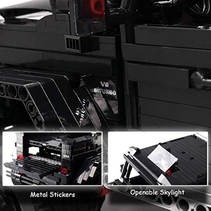 • IDEAL GIFT: The perfect gift for car lovers and future engineers! Build and experience a quintessential collectible pickup! This 1:8 scale G63 6X6 pickup truck model features a metal stickers,detailed V8 engine, active rear door , skylight and hood, six-wheel drive, suspension and detail spare tire, comes in luxurious box packaging with a detailed instruction.