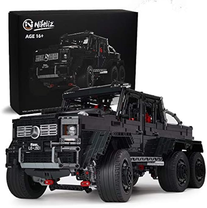 Nifeliz Black Pickup G63 6X6 MOC Building Blocks and Engineering Toy, Adult Collectible Model Cars Kits to Build, 1:8 Scale Truck Model (3300 Pieces)