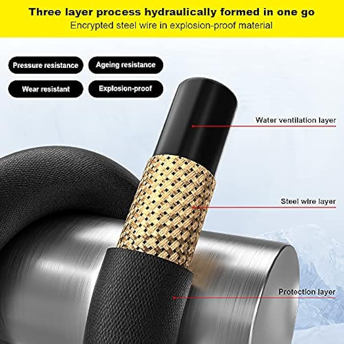 • ♛【Kink Resistant Power Washer Hose】The combination of high-quality materials and high-tech craftsmanship brings excellent kink resistance. It's easy to carry, drag and roll up. Warm Tips: For ease of movement and storage, please lay the hose flat to its full length when using it for the first time.