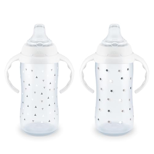 About this item Helps make the transition from bottle to cup easier Easy grip, anti-slip handles are easy for baby to hold and removable as baby grows Spill-proof, soft spout is designed to be gentle on gums while teaching baby to drink from a spout. Liquids flow easily when sipped Air vent helps reduce swallowed air BPA free; dishwasher safe; Recommended for ages 9m+