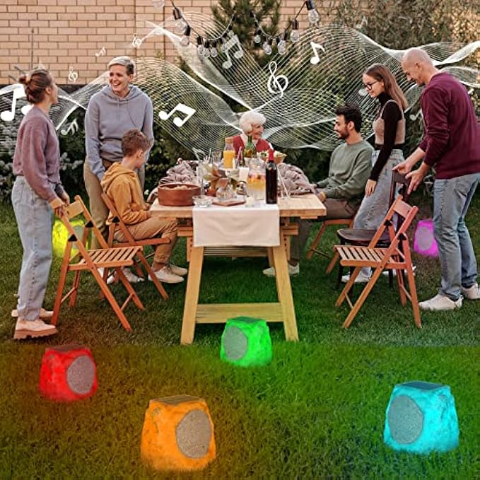 • ☀【 bluetooth speakers with lights】These rock-like speakers are also a light-emitting speaker. Because they are equipped with RGB LED lights! While you enjoy the music, the rock speakers will always change color slowly along with the music! Of course you can also switch to a fixed color/off! This outdoor bluetooth speakers with lights will add a lot of fun to your garden, patio or backyard, poolside!