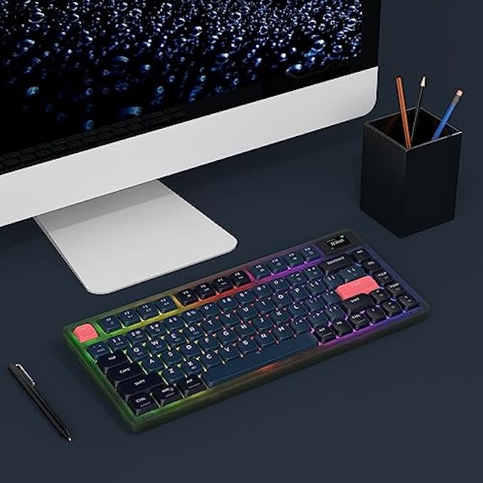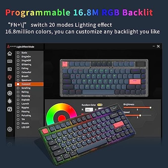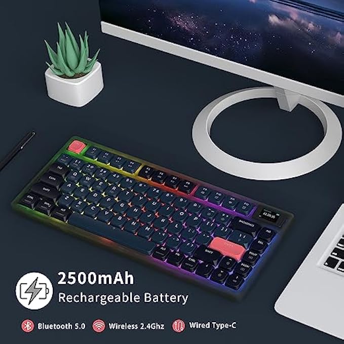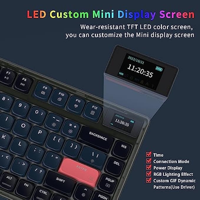 NACODEX AK832PRO 75% Low Profile Slime Mechanical Keyboard with 1.06’’ Customizable Display Screen | BT5.0/2.4G/USB-C Gasket Keyboard |2500mAh RGB Gaming Keybaord for Mac/Win (Outemu Blue Switch)