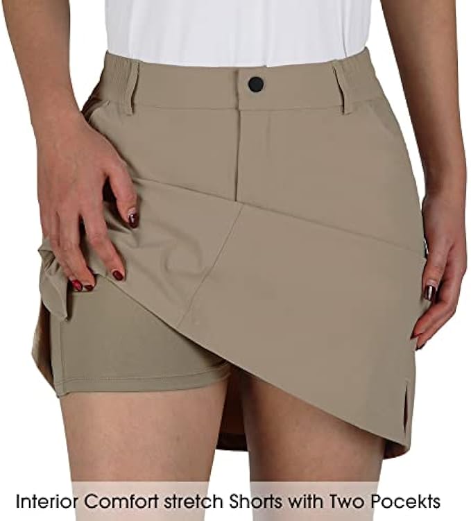 • QUICK DRY FABRIC: Lightweight stretch nylon fabric wicks moisture away from skin to keep you cool and dry; DWR waterproof feature can make water droplets slip off the surface of the skort skirts