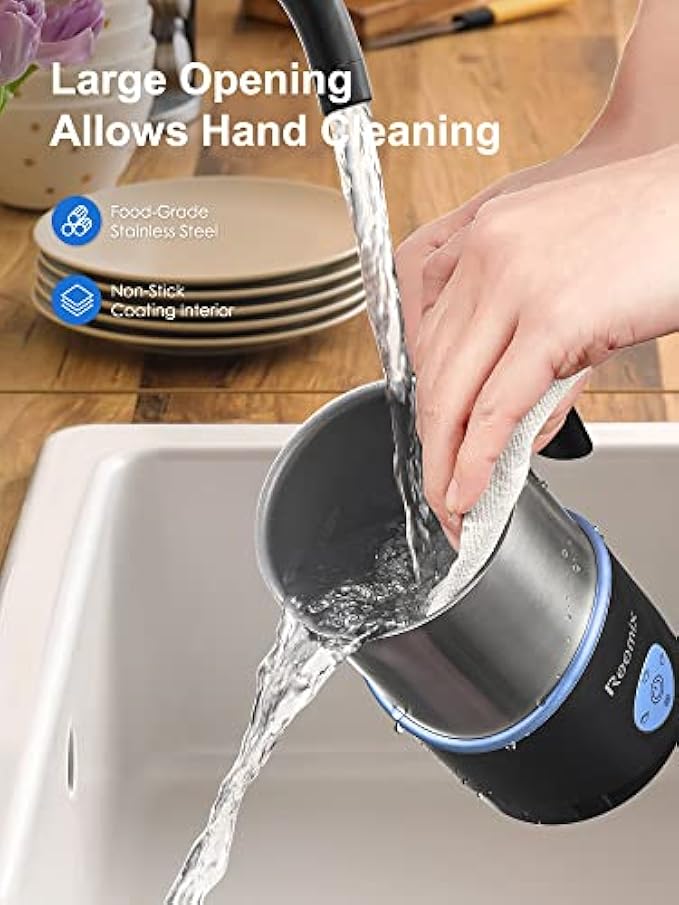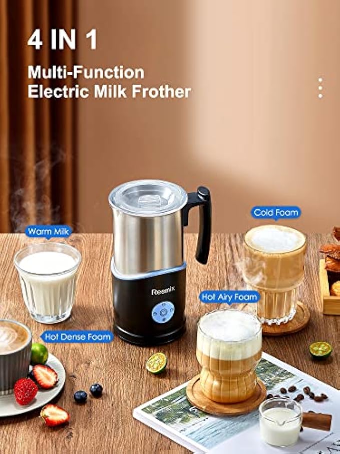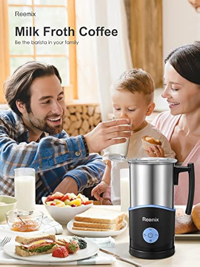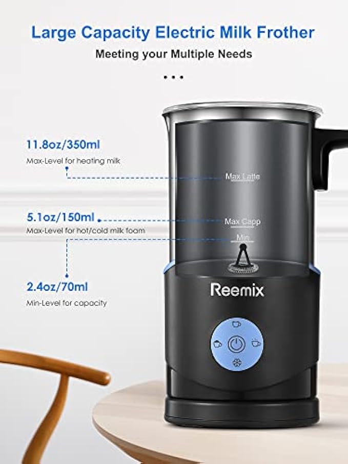 Milk Frother, Reemix 11.8oz Electric Milk Steamer Soft Foam Maker With Large Open,4 IN 1 Multifunction for Hot & Cold Froth, Automatic off & Easy Cleaning,Silent Operation (Blue)
