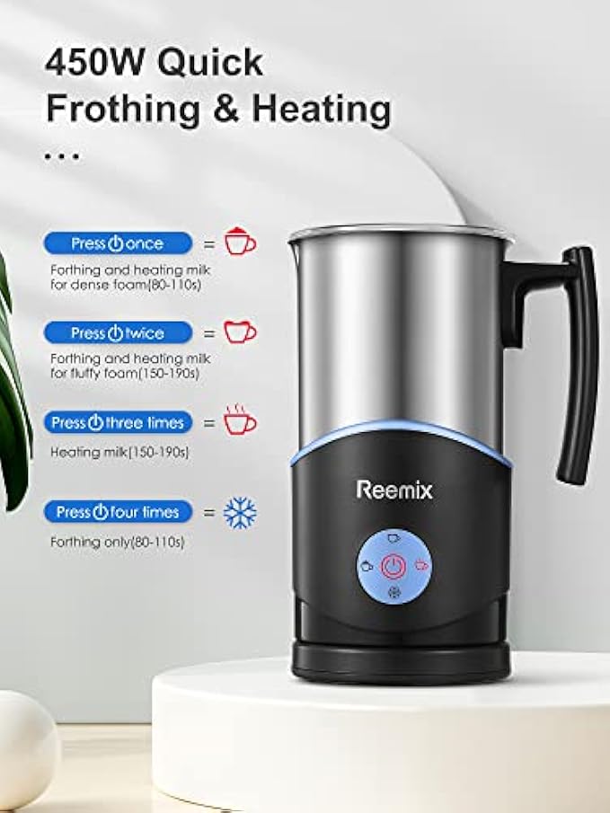 4-in-1 Multifunction: This milk frother can do four different things: make hot dense foam, hot airy foam, hot milk, and cold froth. That means you can make all kinds of coffee drinks with frothy milk, just like a professional barista!