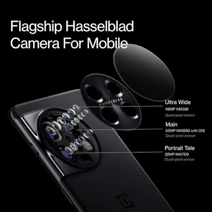 • Burdenless Imaging: The OnePlus 11 5G features a triple camera system, co-developed with Hasselblad - a primary 50MP sensor, a 48MP Ultra-Wide sensor, and 32MP Tele Sensor. Hasselblad integration unlocks a wide range of photographic possibilities, including OnePlus Billion Color Solution, Natural Color Calibration by Hasselblad, & Hasselblad Portraits.