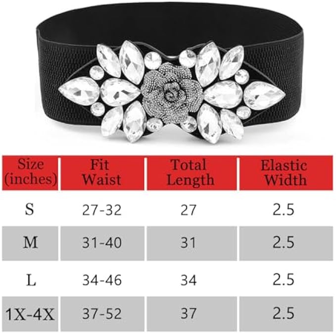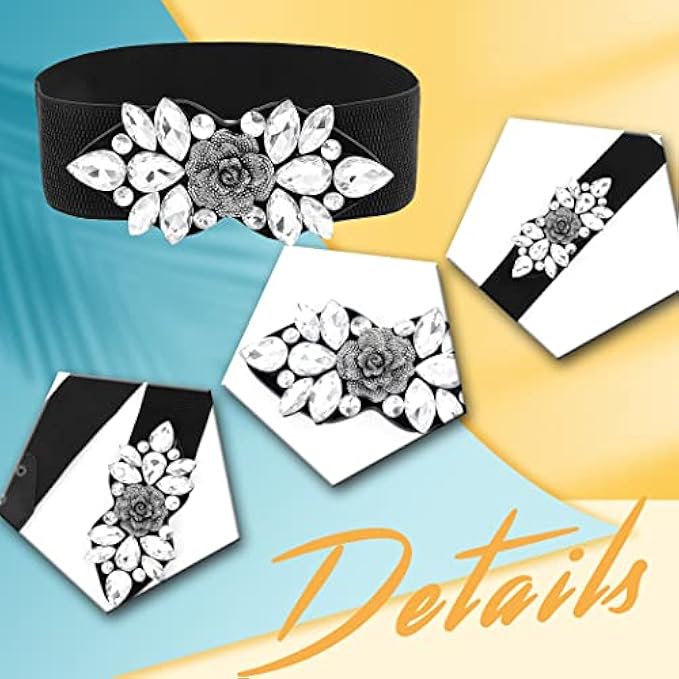 Wriidy Rhinestone Stretch Belt Wide Dressy Belt Plus Size Women Flower Elastic Belts Fancy Dress Waist Accessories for Girls