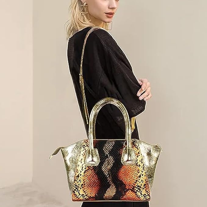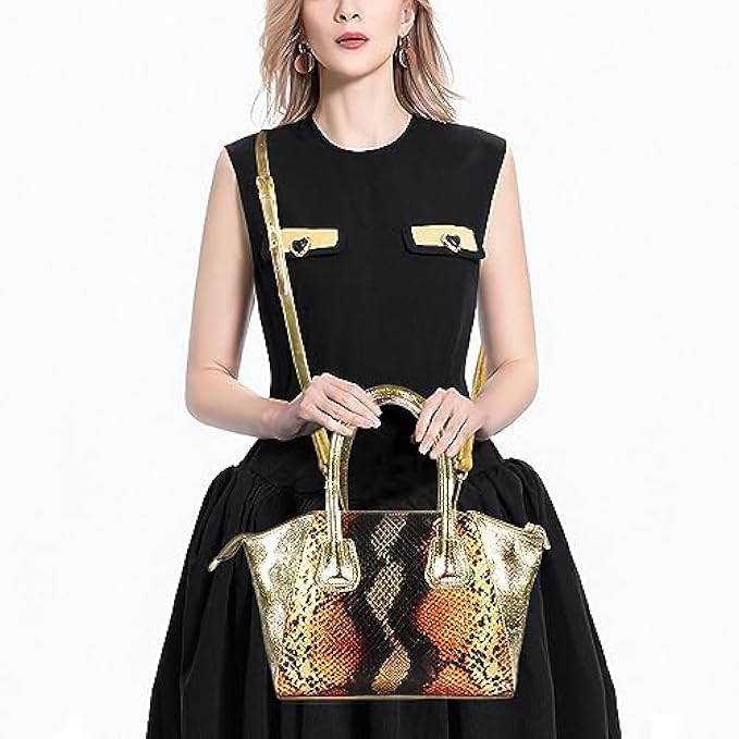 • (Fashion Design) Cow leather with modern Leopard snakeskin pattern. High-quality metal handle optional can not only be used for a long time but also add a lot fashion taste,the womens purse will be loved by most modern female. Bright gold color with black decoration looks cheerful.