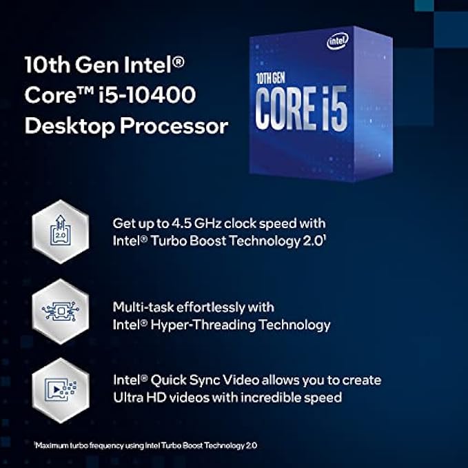 Intel Core i5-10400 Desktop Processor 6 Cores up to 4.3 GHz LGA1200 (Intel 400 Series Chipset) 65W, Model Number: BX8070110400
