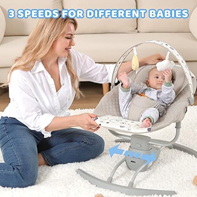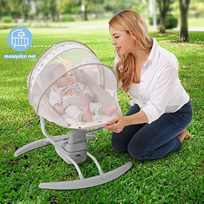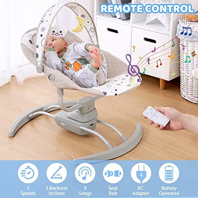 kmaier Electric Baby Swing for Infants, Baby Rocker for Infants with 3 Speeds, 8 Lullabies, AC Adapter & Battery Operated, Indoor & Outdoor Use, Remote Control