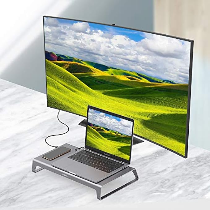 • It's a docking station and a computer stand,With a variety of interfaces, it can also act as a stand for the monitor notebook and ALL-in-One PC.