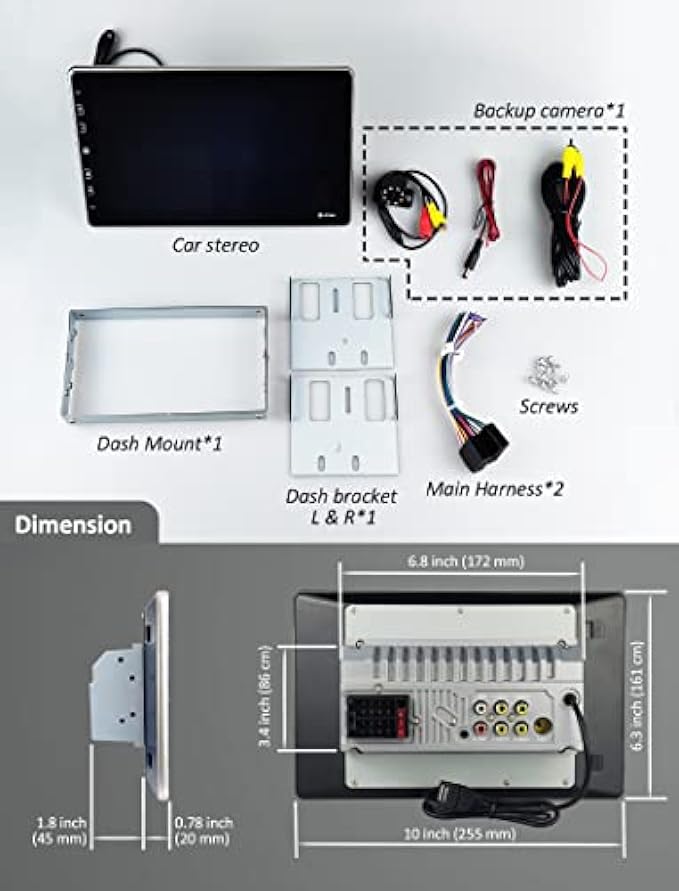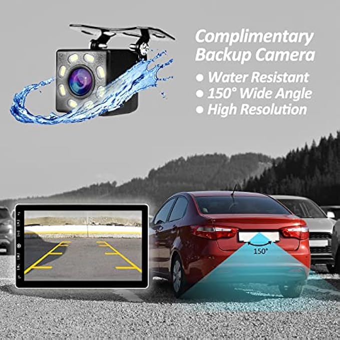 • ✔Your Car's Best Assistant - Come with a complimentary water-proof, wide-angle reverse camera. For a ride that's both safe and fun, this 10-inch double DIN car stereo comes with AM/FM radio reception, steering wheel control access, and backup camera support.