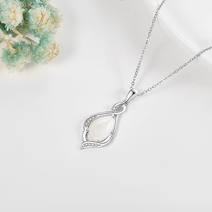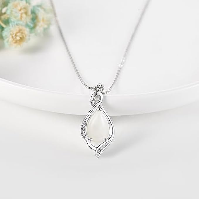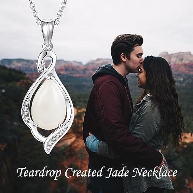 EXRANQO Teardrop Created Jade Necklace 925 Sterling Silver Teardrop Pendant Necklace Jewelry Gifts for Women Girls