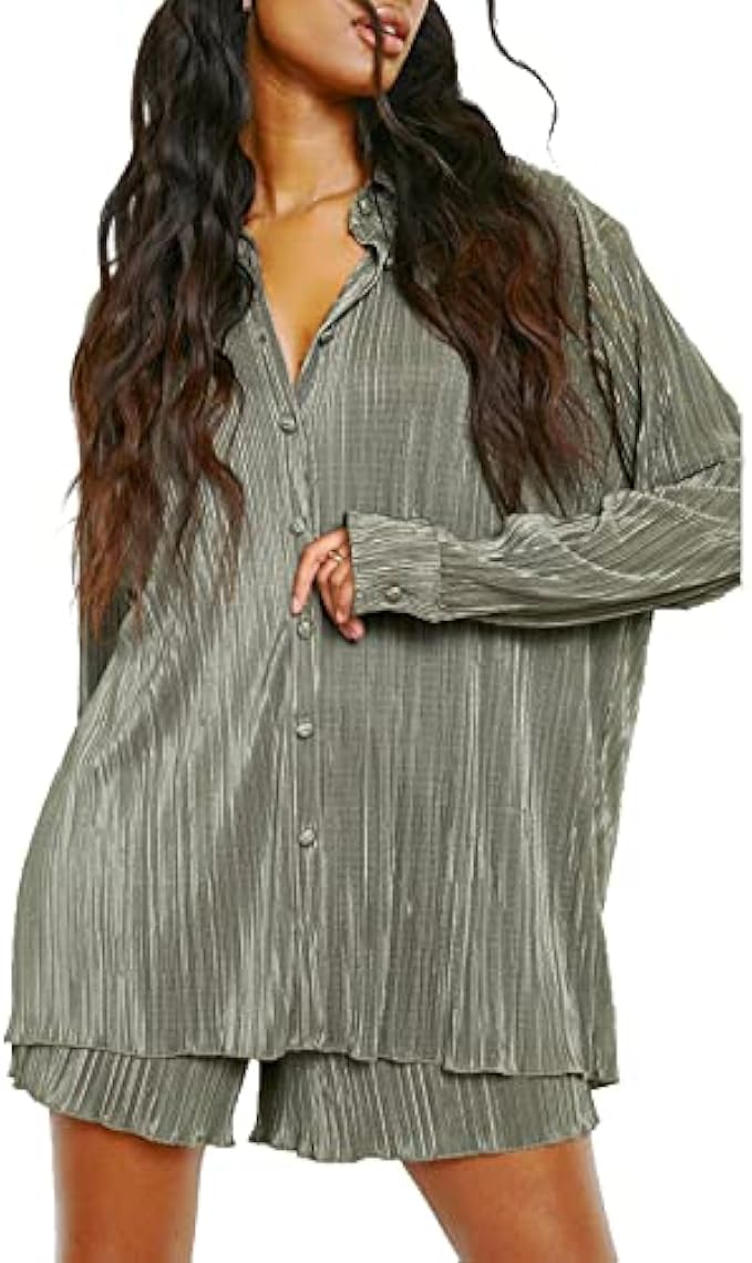 <li class="a-spacing-mini"><span class="a-list-item"> Polyester </span></li> <li class="a-spacing-mini"><span class="a-list-item"> Button,High Elastic closure </span></li> <li class="a-spacing-mini"><span class="a-list-item"> Hand Wash Only </span></li> <li class="a-spacing-mini"><span class="a-list-item"> Material: Women two piece outfits made of polyester fiber. Soft, breathable, lightweight, skin friendly, stretchy, comfy to wear. </span></li> <li class="a-spacing-mini"><span class="a-list-item"> Features: Button down shirts and pants two piece sets, label collar, V neck, floral printed/ solid color, oversized style, ruched design, wide leg pants, straight leg, high elastic waistband. </span></li> <li class="a-spacing-mini"><span class="a-list-item"> Style: Summer casual 2 piece outfits set, wide leg pant romper jumpsuit, vintage y2k 90s streetwear, long sleeve blouse and pant tracksuit set, high waist baggy pants set. </span></li> <li class="a-spacing-mini"><span class="a-list-item"> Occasion: Suitable for casual, daily, home, pajamas, vocations, outside, party, club, night out, street, dating, weekend, office, school, running, photo shot, beach, holiday, travel etc. </span></li> <li class="a-spacing-mini"><span class="a-list-item"> Size: S/ M/ L. Before order, please carefully read the Size Chart we provided in the pictures. Package Include: 1x long sleeve button down shirt, 1x casual wide leg pant. </span></li>