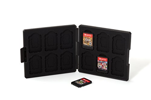 Officially Licensed by Nintendo Stores 12 Nintendo Switch game cards and 12 micro SD cards (games not included) Form fitting rubber slots secure game cards Snap closure keeps cards secure Compact for Easy portability