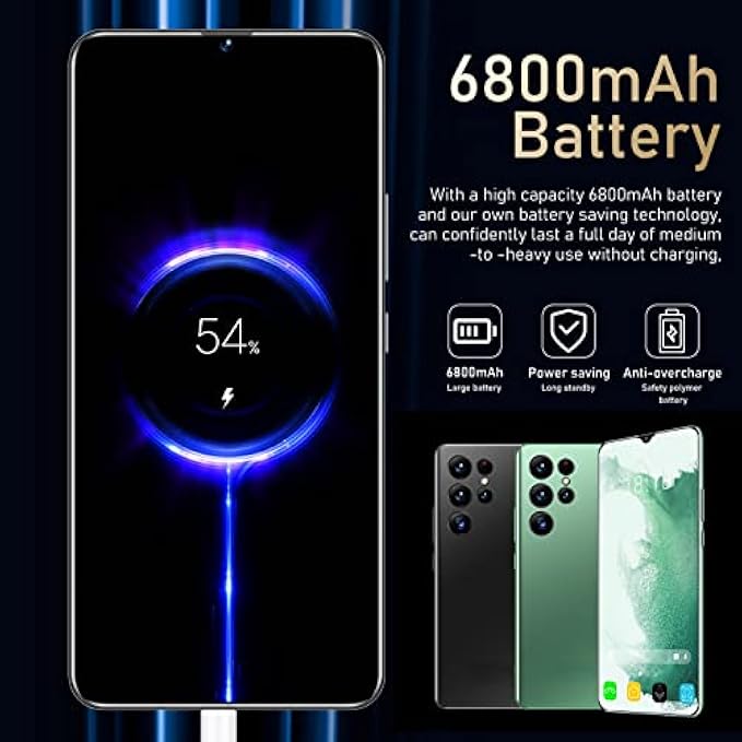 • GOOD FEATURES: Mobile phone with Face recognition, with WIFI, BT, FM, GPS, Type C charging port, 3.5mm standard headphone interface. Maximum support expansion 128GB memory card, support to install two Sim cards at the same time or install one Sim card and one small memory card at the same time. With a high capacity 6800mAh battery and our own battery saving technology, can confidently last a full day of medium-to-heavy use without charging.