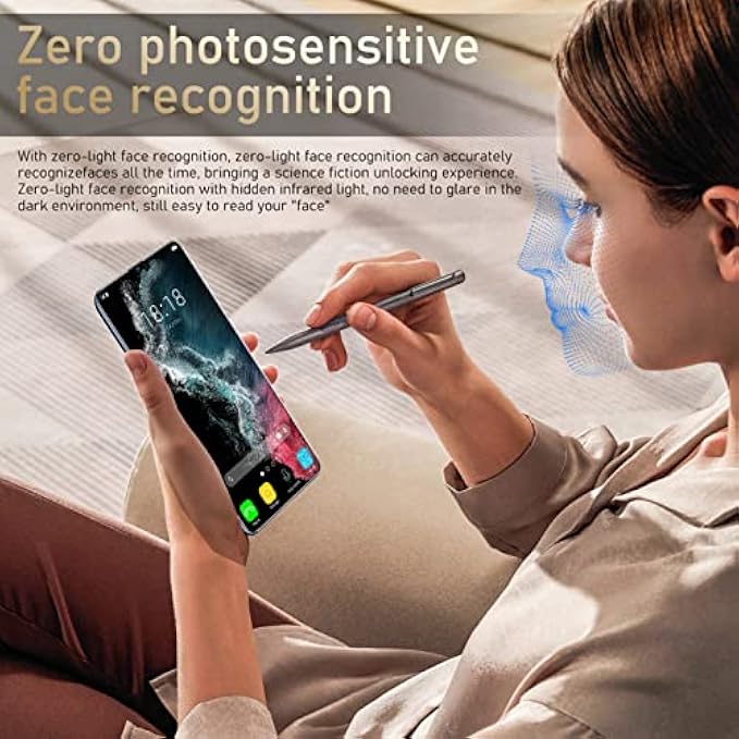 • FACE RECOGNITION: The smartphone with zero-light face recognition,zero-light face recognition can accurately recognize faces all the time,bringing a science fiction unlocking experience. Zero-light face recognition with hidden infrared light,no need to glare in the dark environment,still easy to read your"face". And has Screen fingerprint unlock. Under the screen,it contains advanced technology.innovative screen fingerprints light touch and flash unlock.