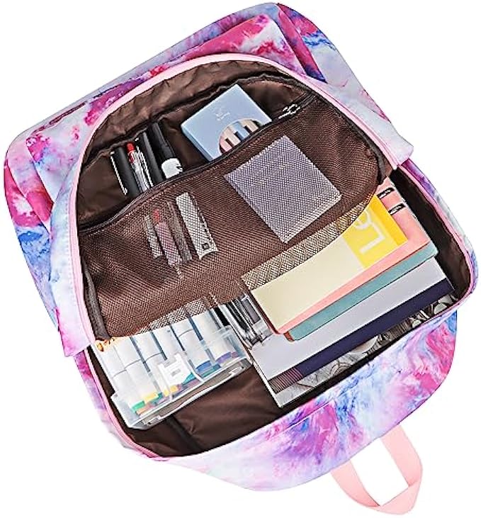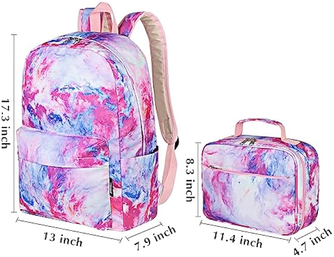 Airyard Girls Backpack, School Backpack for Girls, Lightweight Water Resistant School Bag for Teen Girls Kids Backpack with Lunch Box (Galaxy Cloud Purple)