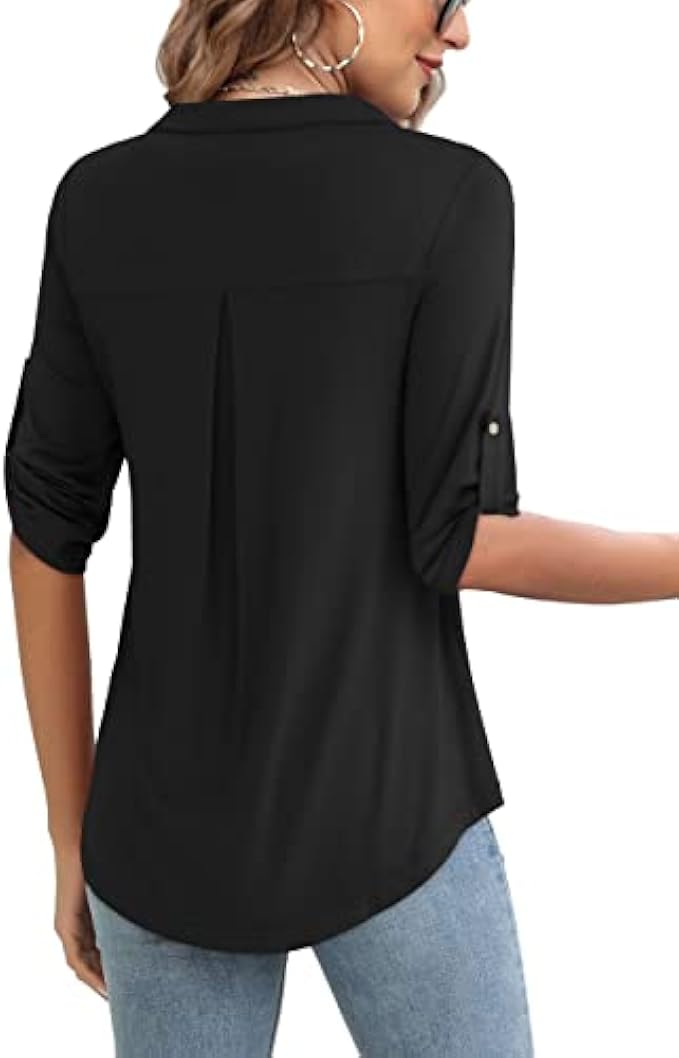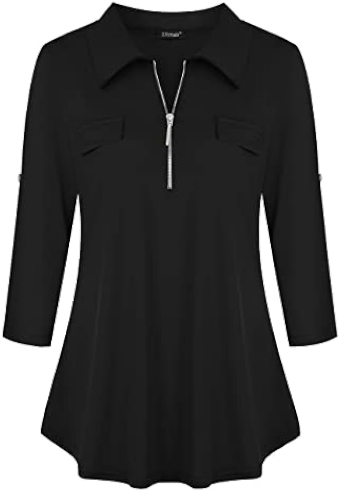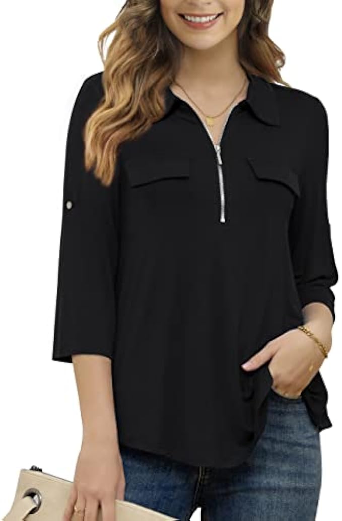 <li class="a-spacing-mini"><span class="a-list-item"> 95% Rayon, 5% Spandex </span></li> <li class="a-spacing-mini"><span class="a-list-item"> Imported </span></li> <li class="a-spacing-mini"><span class="a-list-item"> Zipper closure </span></li> <li class="a-spacing-mini"><span class="a-list-item"> Hand Wash Only </span></li> <li class="a-spacing-mini"><span class="a-list-item"> Lightweight and Soft Fabric Tops Give You Comfortable Feeling All Day, 3/4 Sleeve Shirts for Women Easy Dress Up and Down </span></li> <li class="a-spacing-mini"><span class="a-list-item"> Plus Size Tops for Women with 3/4 Cuffed Sleeve, Half Zip, V Neck Collared, Patch Chest Pockets and Perfect Length to Wear with Any Pants, Jeans, Leggings and Skirts </span></li> <li class="a-spacing-mini"><span class="a-list-item"> 3X Womens Tops Plus Size Suitable Casual,Office, Party, Dating, Shopping, Outgoing, Holiday or Daily Wear </span></li><li class="a-spacing-mini"><span class="a-list-item">Womens Tops Garment Care: Machine Wash or Hand Wash in Cold, Do Not Bleach, Dry Flat in Shade</span></li> <li class="a-spacing-mini"><span class="a-list-item">Size Notice: Before Order This 3/4 Sleeve Tops for Women, Please Read the Measurements in the Product Description Below Carefully</span></li>