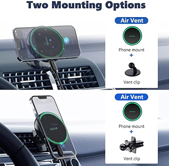 • 【360° Versatile View&One Hand Operation】Our wireless car charger rotates using a high-quality ball joint that can rotate 360 degrees and provide the most comfortable, optimized view angle. position your phone at the perfect angle to enjoy a more relaxed and safe drive. the base of the mount remains fixed into the air vent of your car, it won't move no matter how much swiveling or rotation you do.