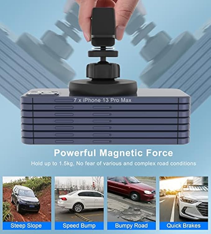 • 【Powerful Magnetic + No Signal Interference】Using 20g of N52 high temperature resistant strong magnets, 100 degrees non-demagnetization.The Gloplum laboratory has tested a vertical tensile force of 1.3 kg that the 9 iPhone 13 mini phones can suck up at the same time. A trapped magnetic field with anti-magnetic interference treatment does not affect the phone signal.